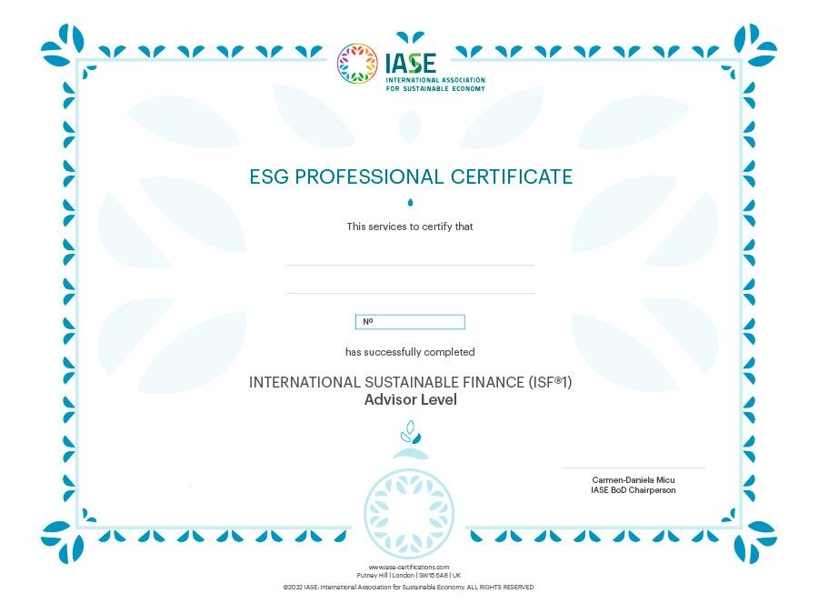 IASE INTERNATIONAL SUSTAINABLE FINANCE (ISF) CERTIFICATION